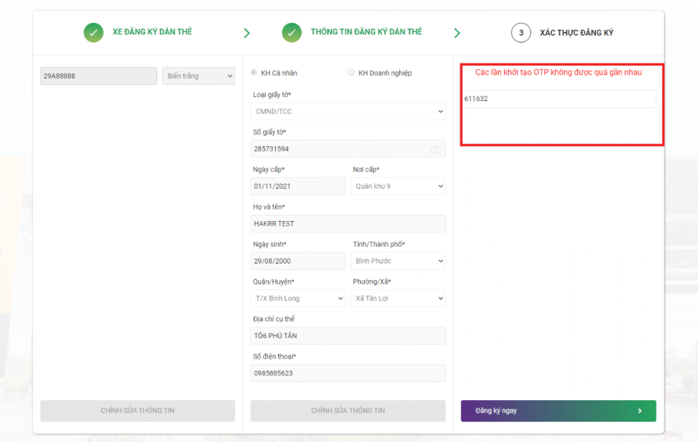 Sau khi dán thẻ, bước tiếp theo là kích hoạt tài khoản VETC để thẻ có thể hoạt động. Quá trình kích hoạt khá đơn giản: