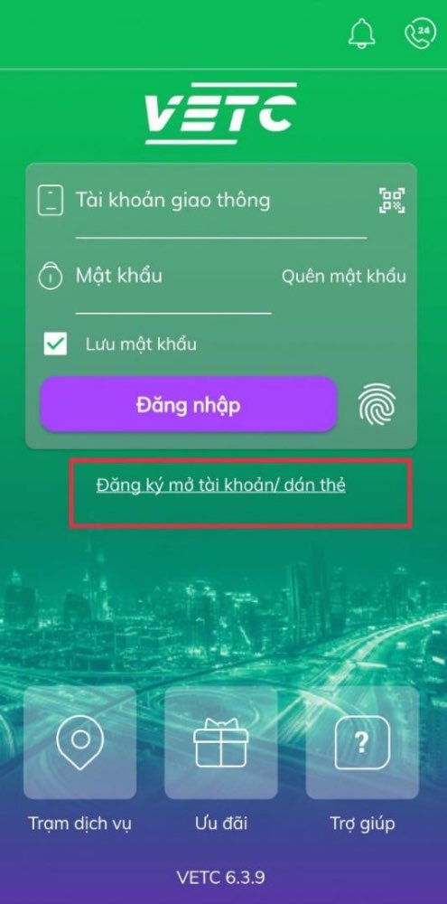 Ngoài website, bạn có thể đăng ký trực tiếp qua ứng dụng VETC trên điện thoại. Các bước thực hiện như sau: