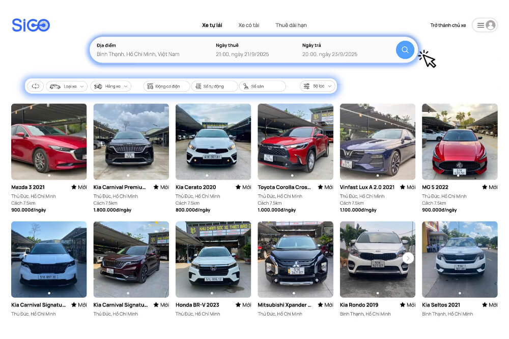 👉 Chỉ cần vài thao tác trên Sigo, bạn sẽ có ngay chiếc xe phù hợp trong 3 phút.