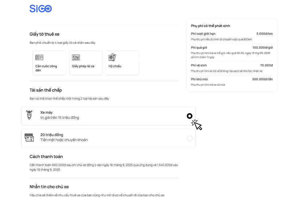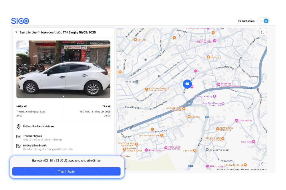Hướng dẫn đặt xe trên nền tảng Sigo